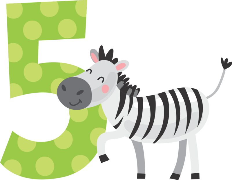 Five Birthday Animal Zebra Number 1