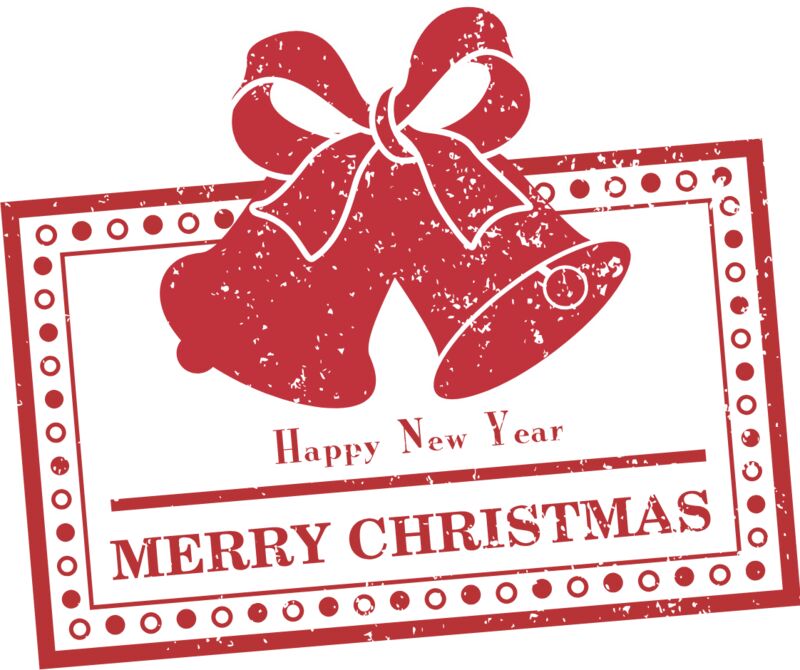 Merry Christmas Happy New Year Bells Stamp 1