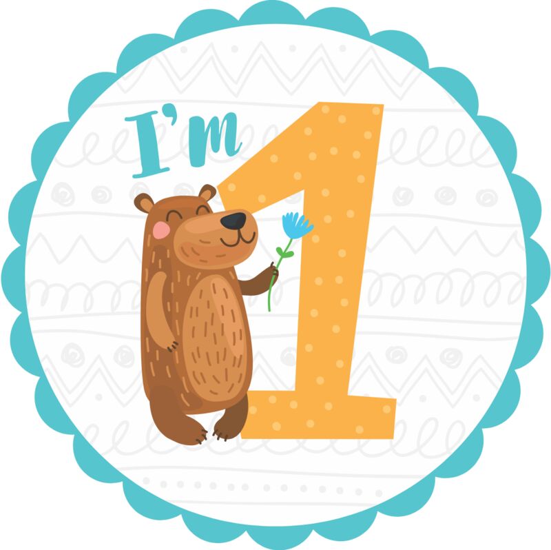 One Birthday Animal Bear Number 2